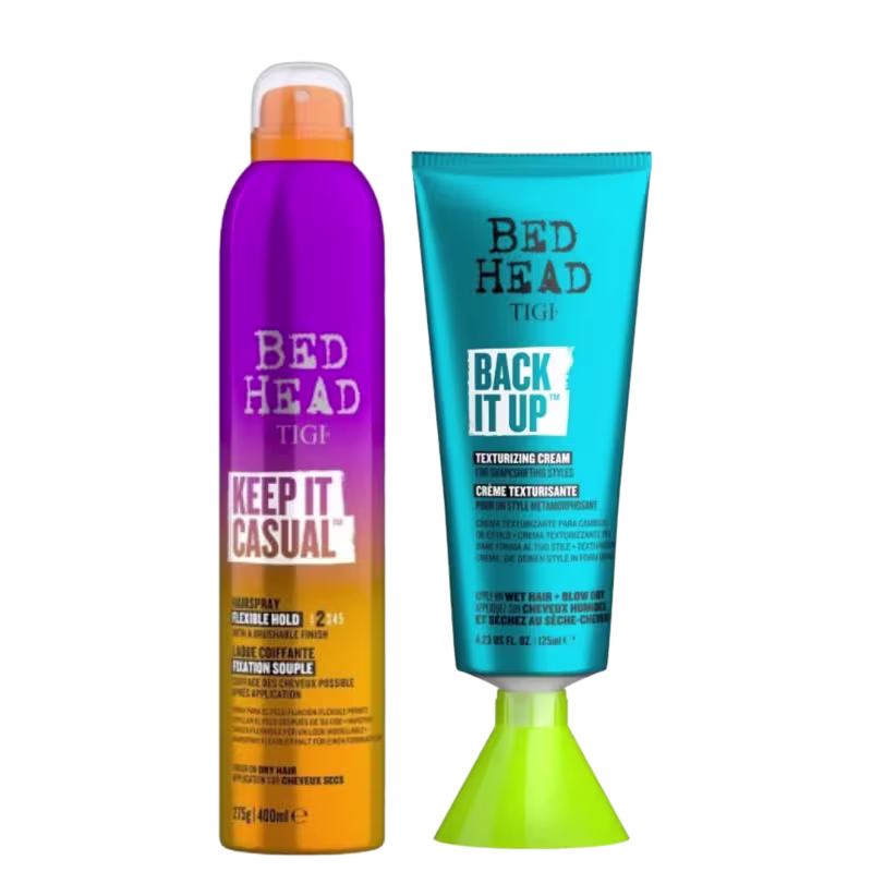 O kit TIGI Bed Head Keep it Casual Spray e TIGI Bed Head Back It Up oferece uma combinação perfeita para criar penteados despojados e com textura. O spray Keep it Casual proporciona volume e textura aos fios, enquanto o creme Back It Up ajuda a definir e controlar o penteado. Juntos, esses produtos garantem um visual casual e moderno, ideal para quem busca um estilo descontraído e cheio de atitude.