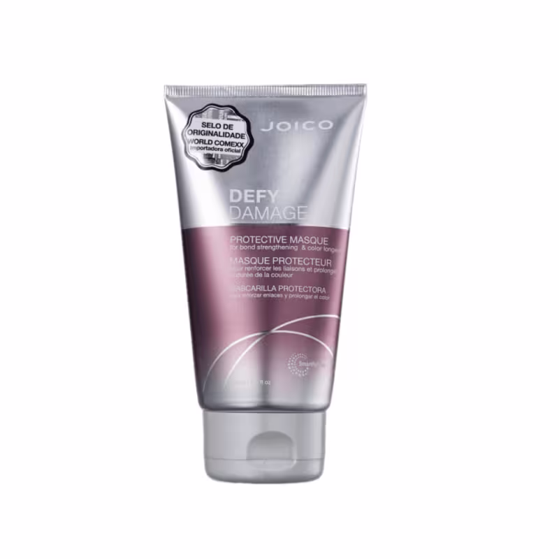 Joico Defy Damage Protective - Máscara 150ml: máscara para todos os tipos de cabelo, principalmente os com coloração. Fortalece a estrutura do fio para evitar danos e quebras. Tem ação profunda que protege o tom do desbotamento e mantém a maciez, o brilho e movimento.