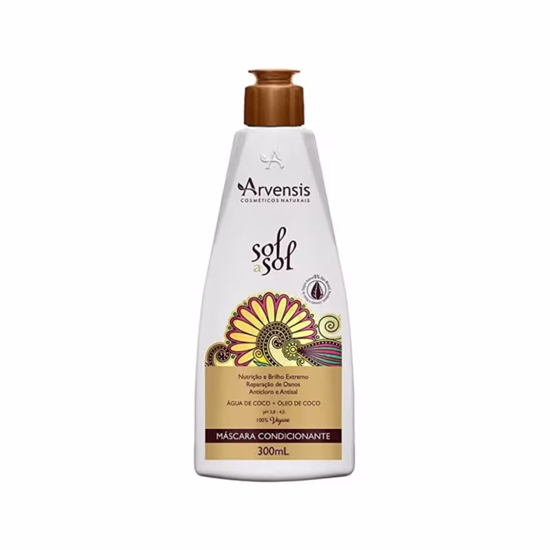 Arvensis Sol a Sol Máscara Condicionante - 300mL: Descrição: A Máscara Condicionante Arvensis Sol a Sol é um tratamento intensivo que promove a hidratação e a revitalização dos cabelos. Com ativos naturais e livre de ingredientes prejudiciais, essa máscara condiciona os fios, reduz o frizz, devolve a maciez e o brilho, além de fortalecer a estrutura capilar.