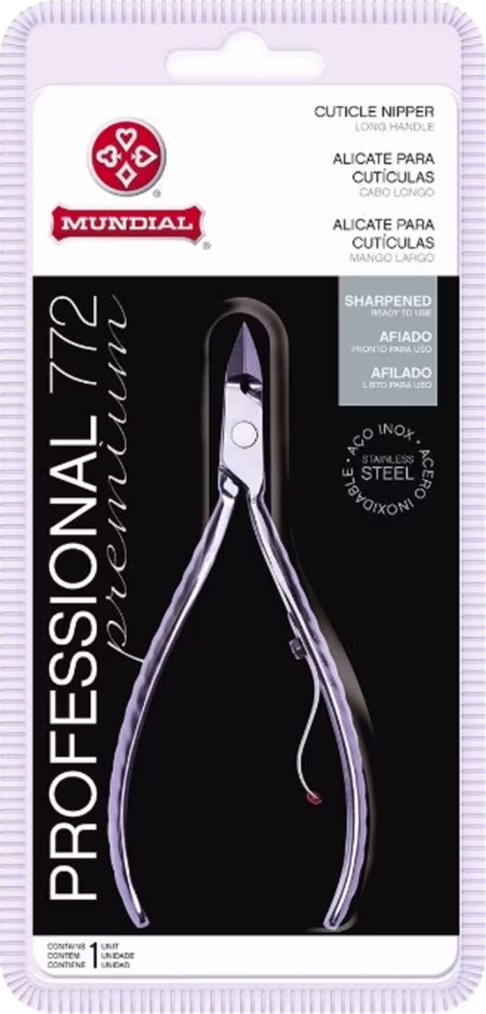 O Alicate de Cutícula Mundial Inox Cabo Curto possui uma mola resistente com redutor de atrito e cabo antideslizante, que proporciona mais segurança e conforto durante sua utilização.