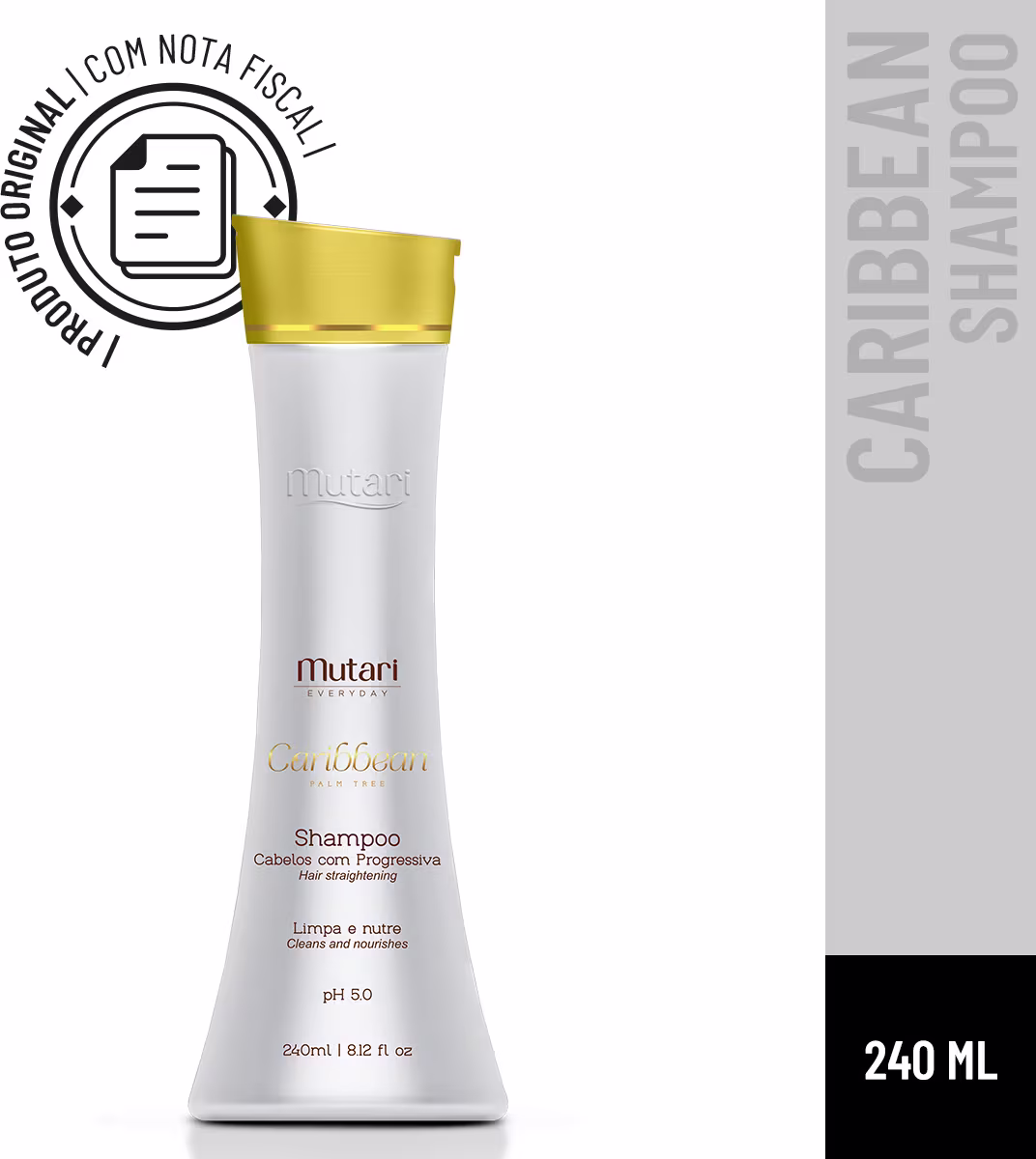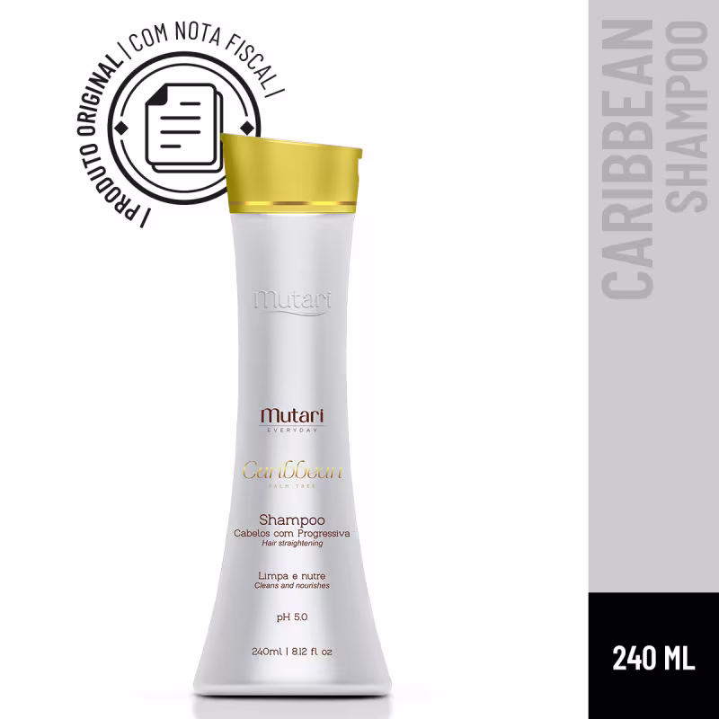 Shampoo para cabelos tratados com progressiva. Mutari Caribbean Palm Tree confere a eliminação de resíduos, sem danificar os fios.