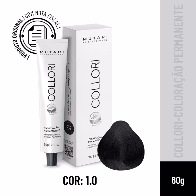 A Coloração Permanente Mutari Collori foi desenvolvida com Óleo de Goji Berry e Arginina, que evita o ressecamento e confere hidratação intensa dos fios, ao mesmo tempo que fornece uma pigmentação ideal e uniforme. Sua fórmula é 100% vegana, e garante segurança completa, sem agredir os fios. Proporciona uma deliciosa ação de bem estar e vitalidade aos cabelos, com resultados surpreendentes.