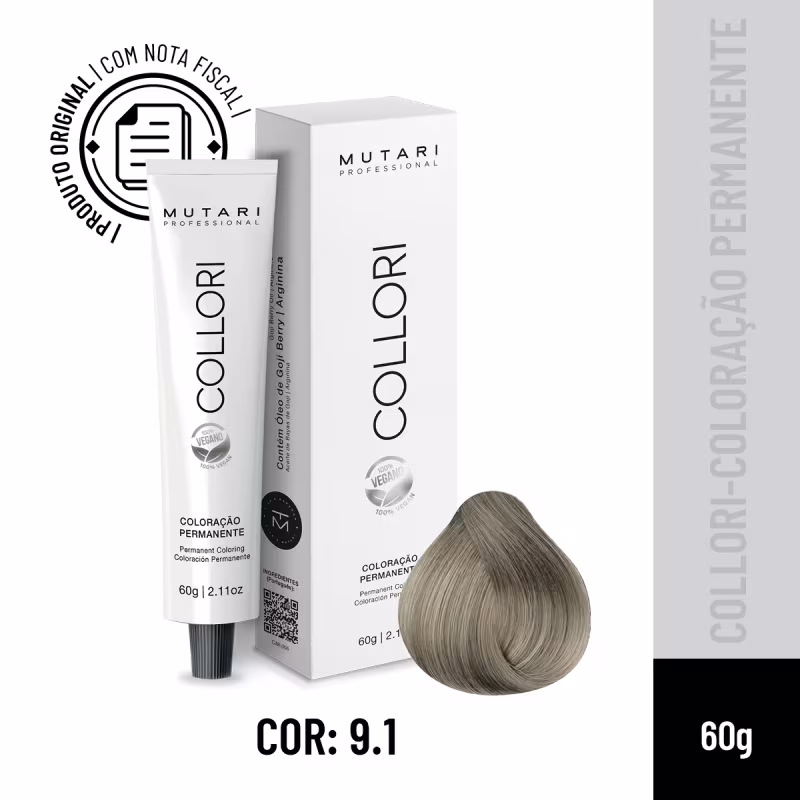 Coloração permanente para todos os tipos de cabelo. Mutari Collori promove cor intensa e brilhante, tratando os fios.