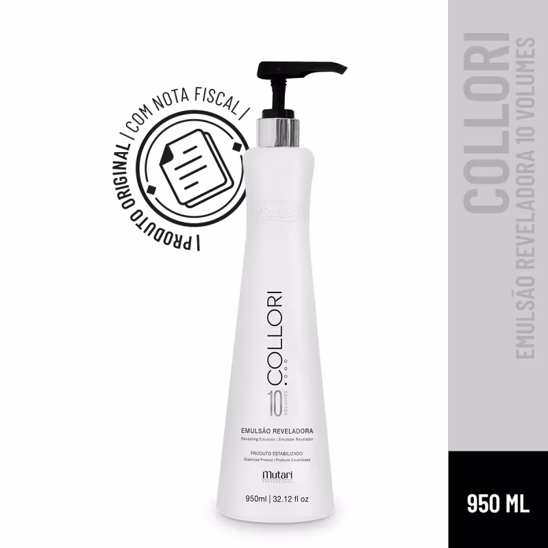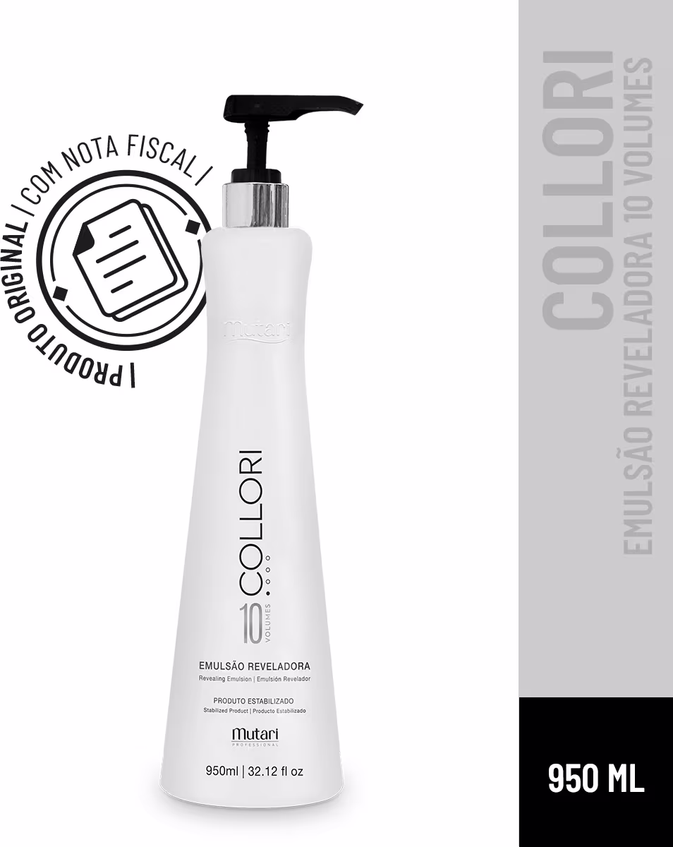 Oxidante com 10 volumes exclusivo para uso profissional. Mutari Collori oferece emulsão reveladora cremosa, com segurança.