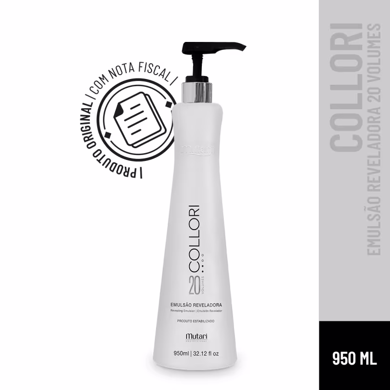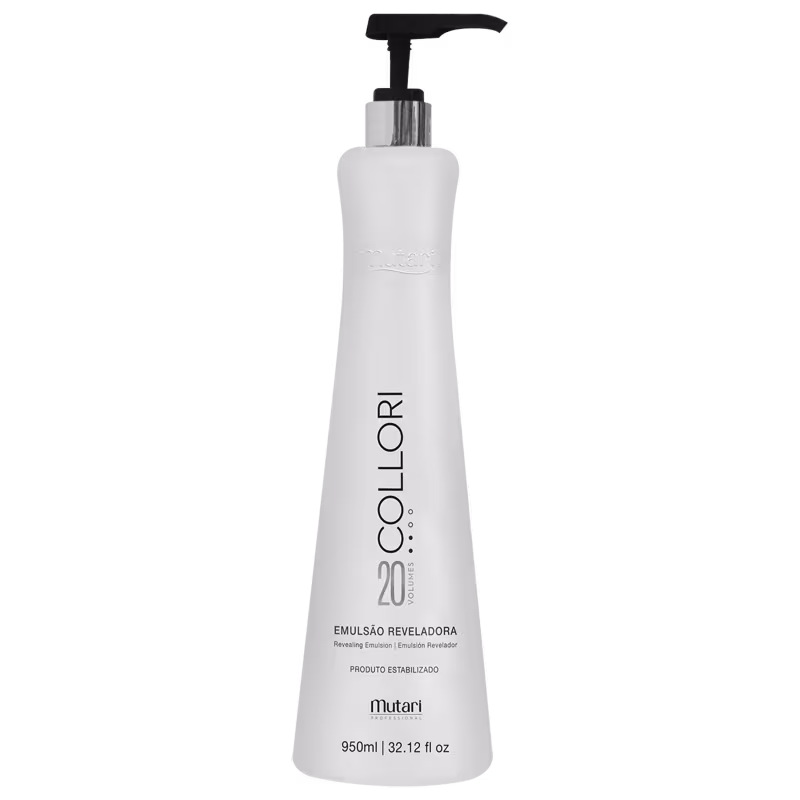 Oxidante com 20 volumes exclusivo para uso profissional. Mutari Collori oferece emulsão reveladora cremosa, com segurança.