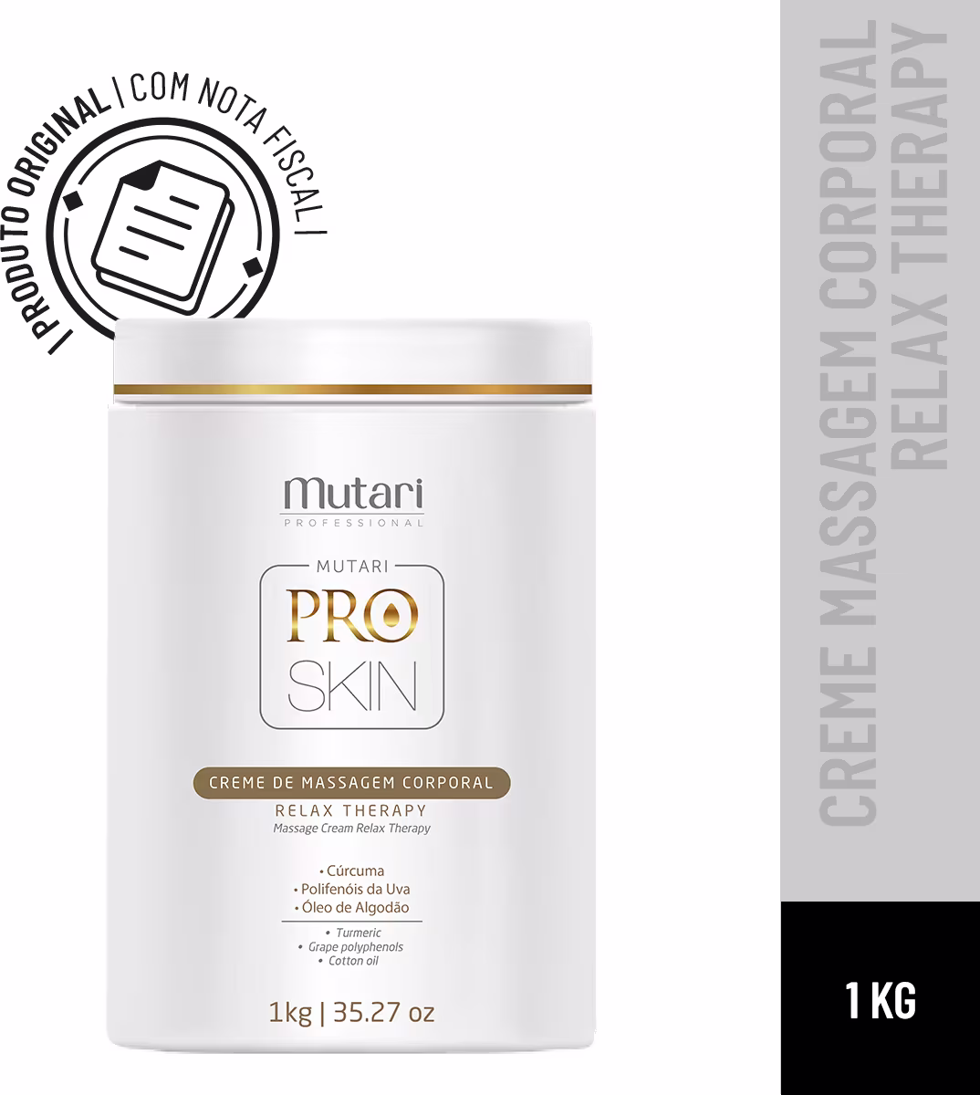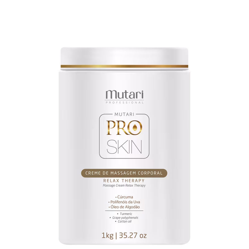 Creme de massagem para corpo e face tamanho profissional. Mutari Pro Skin hidrata, conferindo delicioso toque aveludado.