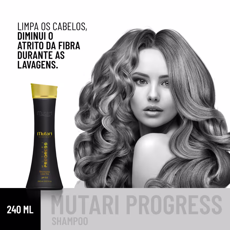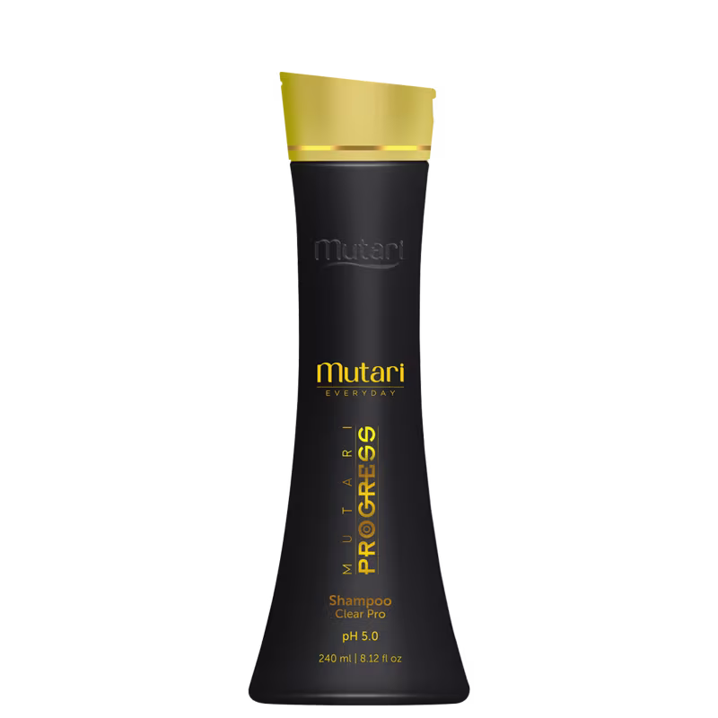 Shampoo para cabelos quimicamente tratados e alisados. Mutari Progress Clear Pro promove ação desembaraçante, com limpeza intensa.