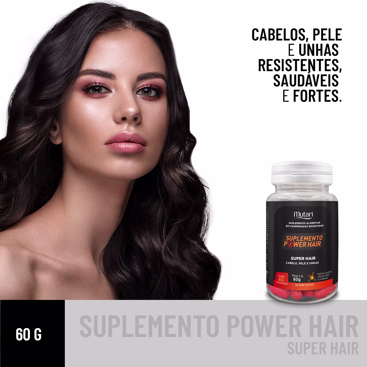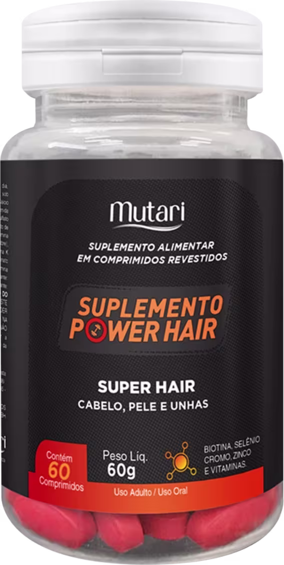 Suplemento vitamínico 100% natural superconcentrado. Mutari Super Hair tonifica cabelos, unhas e pele, garantindo saúde.