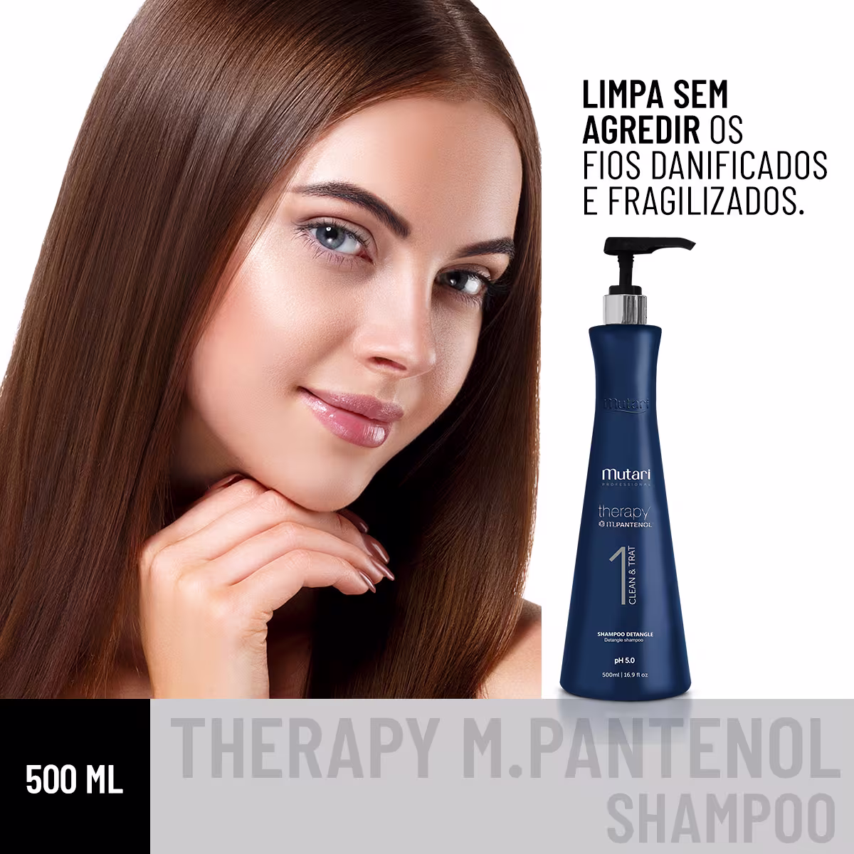 O Shampoo Therapy M. Pantenol Clean & Trat possui em sua formulação o poderoso ativo Pantenol Quartenizado, que garante uma hidratação potente de longa duração, preparando os cabelos para receber o tratamento. Além disso, dispõe de ação anti-resíduos e desembaraçante, promovendo bem estar e saúde, com resultados comprovados. Não contém sal.