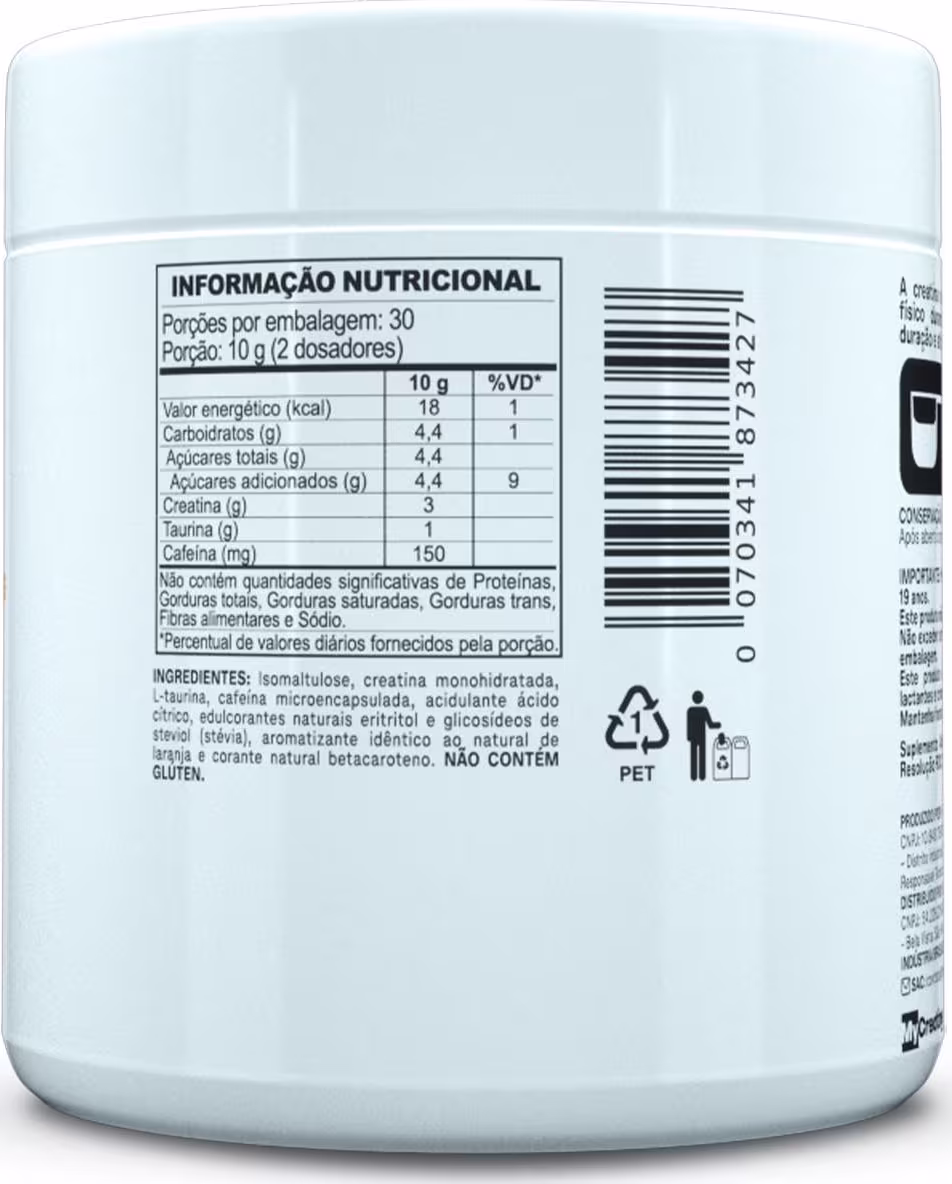 O Suplemento Alimentar MyCreatine Creatine Cafeína + Taurina Sabor Laranja combina creatina, cafeína e taurina em um delicioso sabor laranja, proporcionando ativação matinal com estímulo ao sistema nervoso, aumento do estado de alerta e foco. A creatina potencializa a força e a energia muscular, enquanto a taurina complementa o apoio metabólico, promovendo equilíbrio e concentração para um desempenho superior nas atividades físicas e diárias.