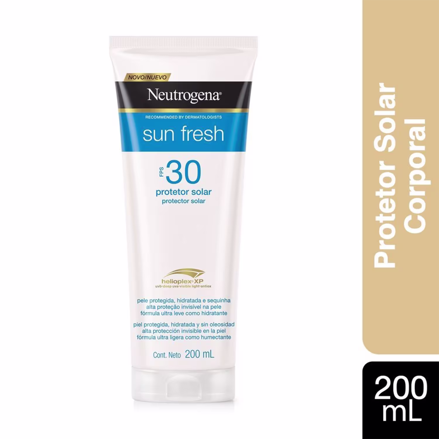 Protetor solar para todos os tipos de pele. Neutrogena Sun Fresh FPS30 entrega alta proteção e textura ultra leve, livre de resíduos.