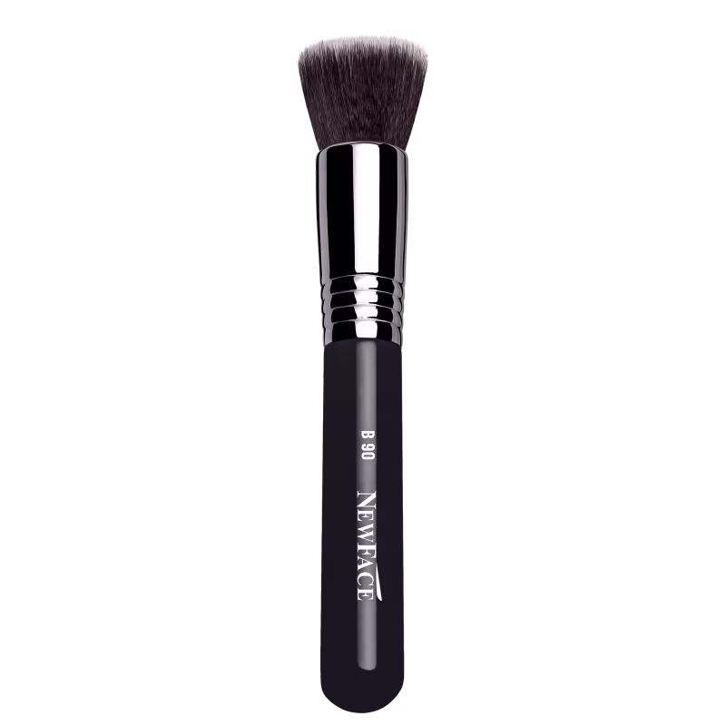 Pincel plano kabuki. Newface Brushes Flat Kabuki B90 conta com cerdas ideais para uma aplicação prática, uniforme e com alta cobertura.