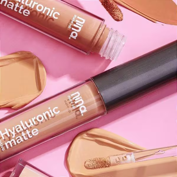 Corretivo líquido. Nina Makeup Hyaluronic Matte ideal para uma rotina de maquiagem prática e versátil, com alta cobertura e textura cremosa, oferece facilidade de aplicação e longa duração, perfeito para uso diário.