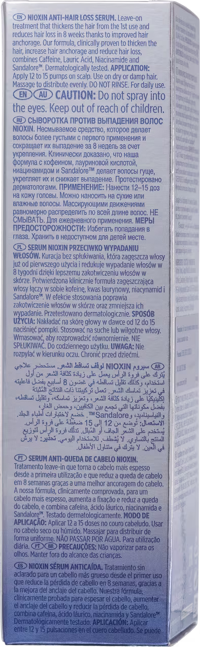 Sérum Antiqueda Nioxin Anti-Hairloss traz fórmula que combina Cafeína, Ácido Láurico, Niacinamida e Sandalore™ para combater a queda capilar e deixar o cabelo visivelmente mais espesso e forte desde a primeira aplicação.