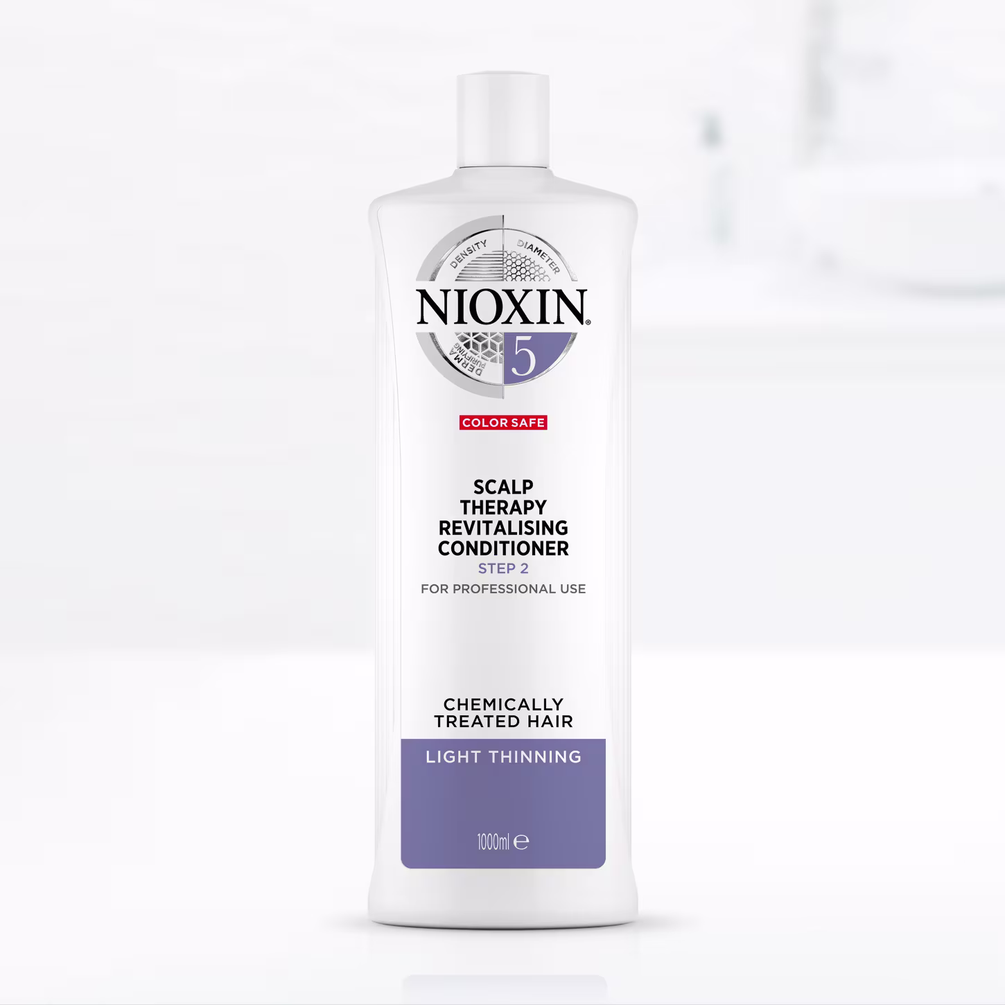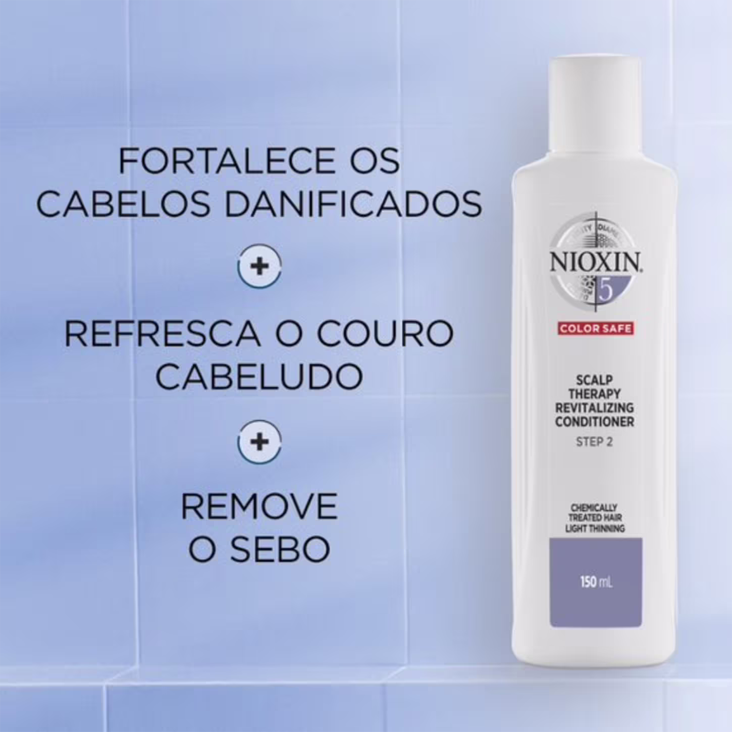Condicionador para cabelos com afinamento leve, quimicamente tratados. Nioxin Sistema 5 Scalp Revitalizing aumenta a densidade, hidrata e controla o frizz. Oferece um cuidado que deixa os fios mais cheios e protegidos das agressões externas. É indicado para quem sofre com rarefação pouco notável.