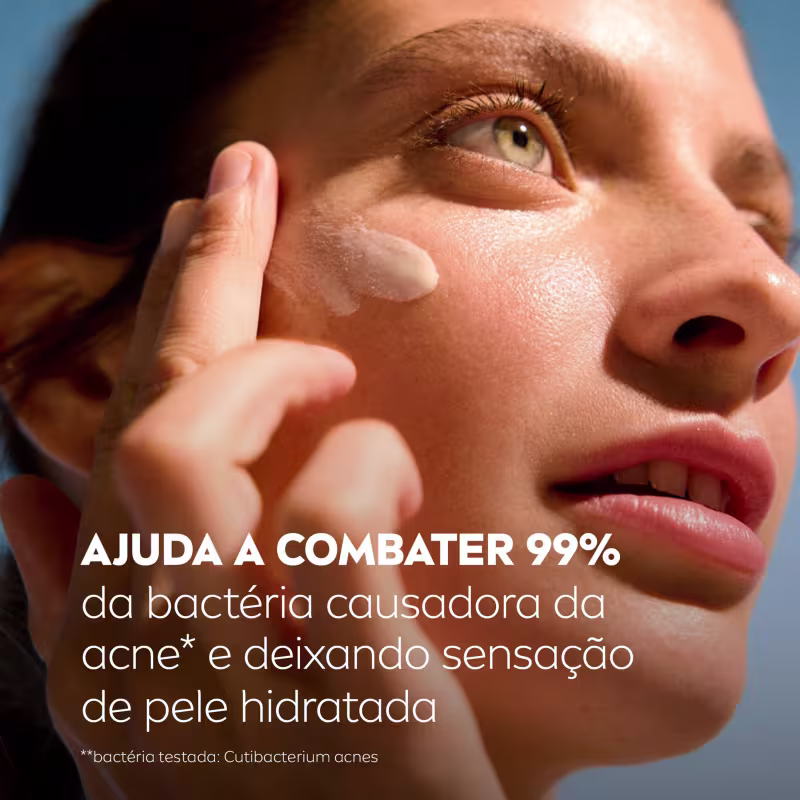 Este hidratante age de várias maneiras: primeiro, combate eficazmente 99% das bactérias responsáveis pela acne; em seguida, controla a oleosidade e deixa a pele com um efeito matte; também contém Ácido Salicílico para remover células mortas e reduzir a vermelhidão da acne.