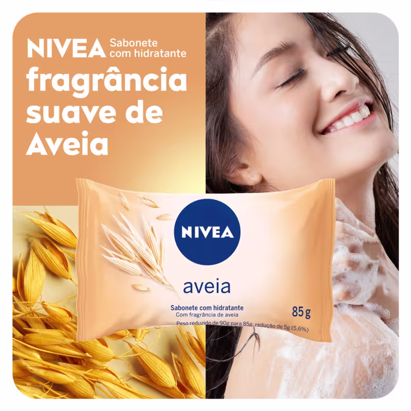 O Sabonete em Barra NIVEA Aveia proporciona espuma cremosa com suave fragrância de Aveia, deixando a sua pele delicadamente perfumada após o banho.
