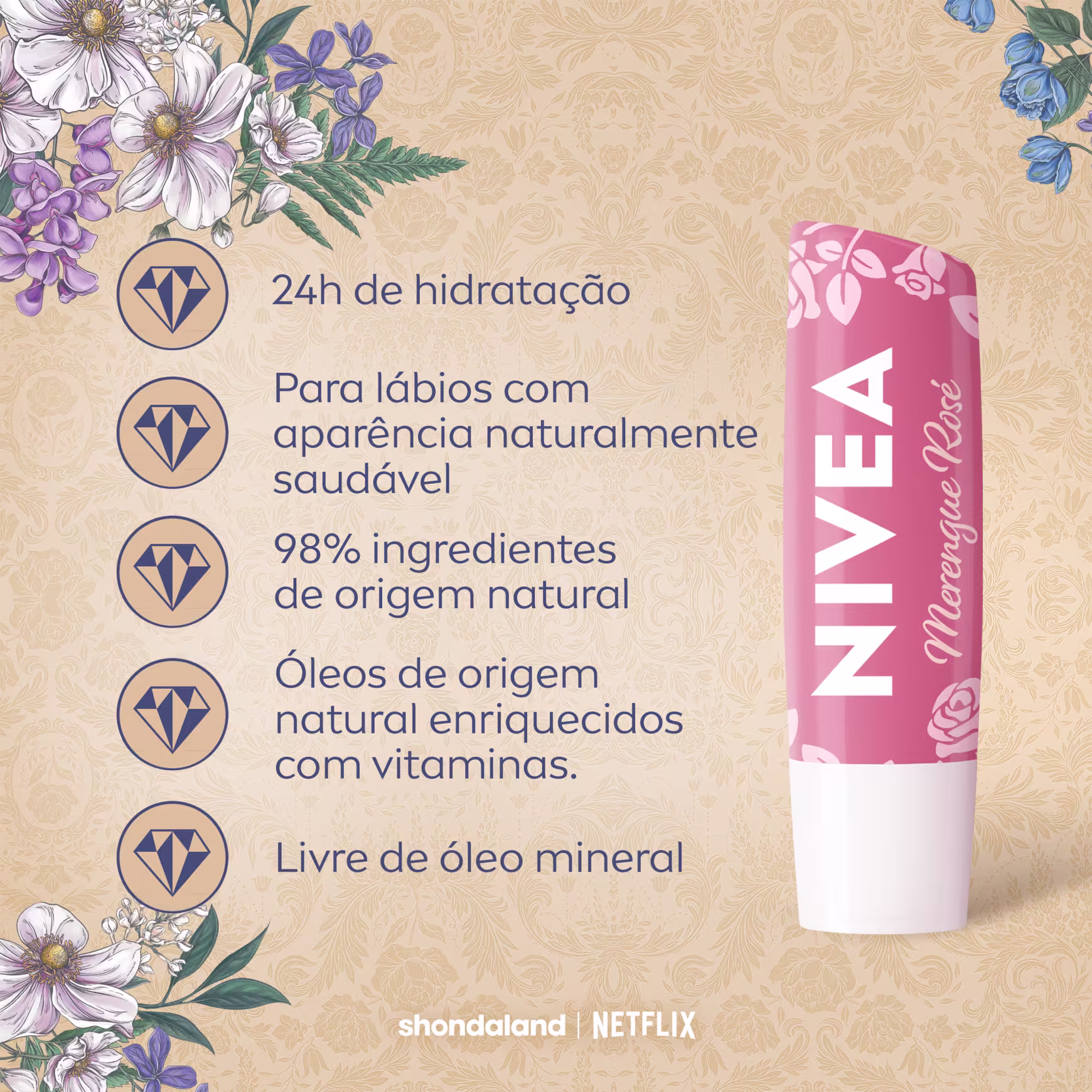 Benefícios do Hidratante Labial NIVEA Bridgerton: