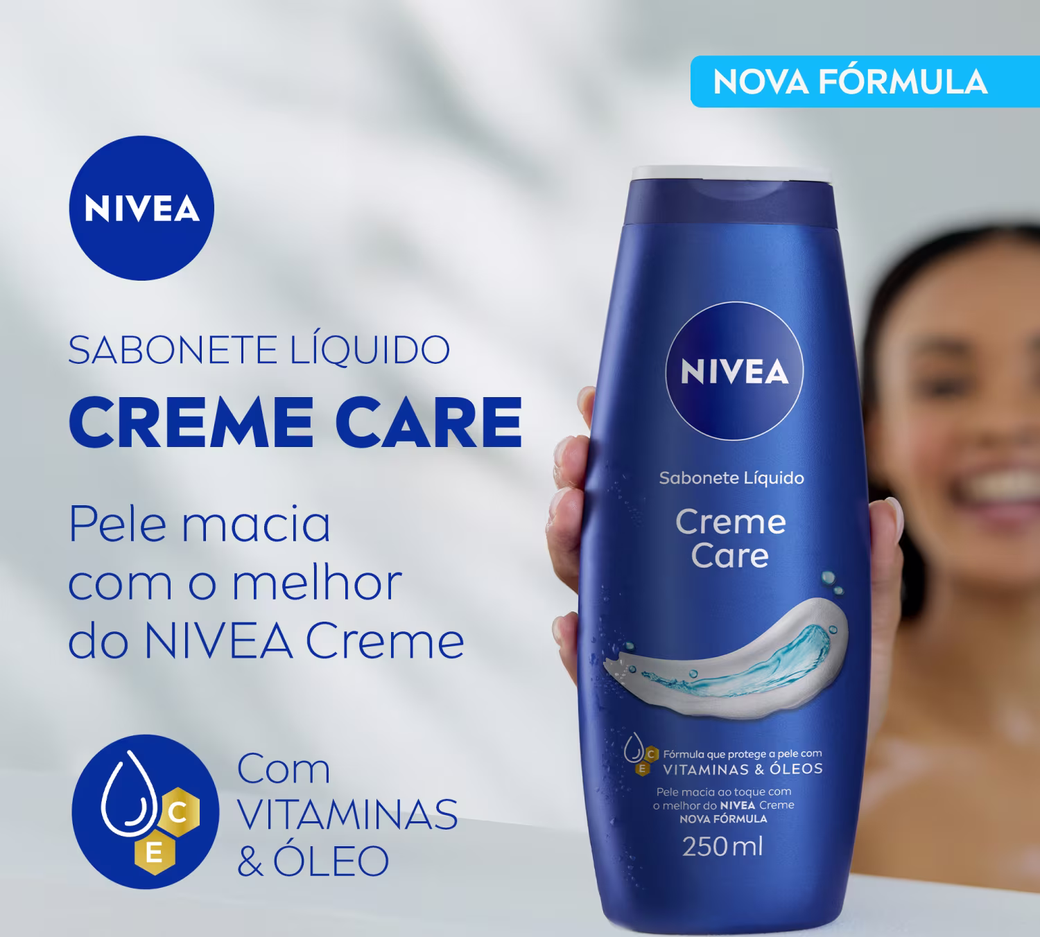 O Sabonete Líquido NIVEA Creme Care produz espuma cremosa, envolve e cuida da pele durante e depois do banho. Hidrata o corpo, confere maciez, além de remover todos os resíduos e impurezas. Rende mais de 60 banhos, já que apenas uma pequena quantidade oferece o resultado que você precisa.