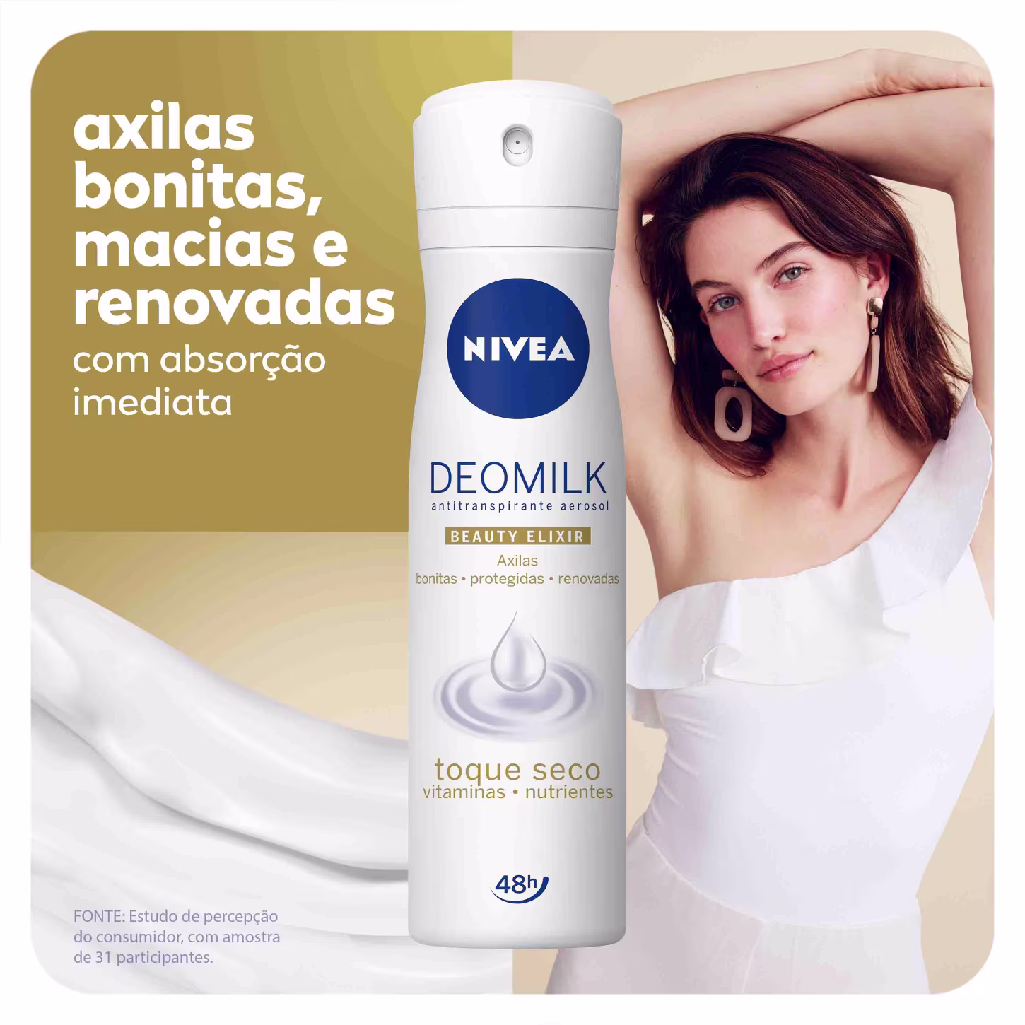 Desodorante NIVEA Deomilk Beauty Elixir Toque Seco Aerossol, garante proteção intensa. Melhores Desodorantes Nivea na BLZ Ver mais ❯