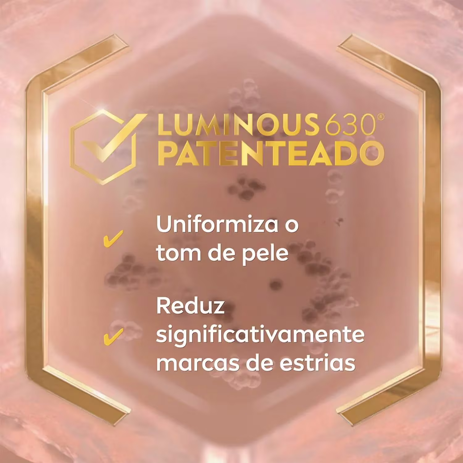 O Sérum Óleo Corporal Luminous 630º Antiestrias possui uma fórmula de alta performance que promove resultados em duas semanas de uso e previne o aparecimento de novas marcas. Você garante uma pele uniforme, hidratada e com aparência saudável.