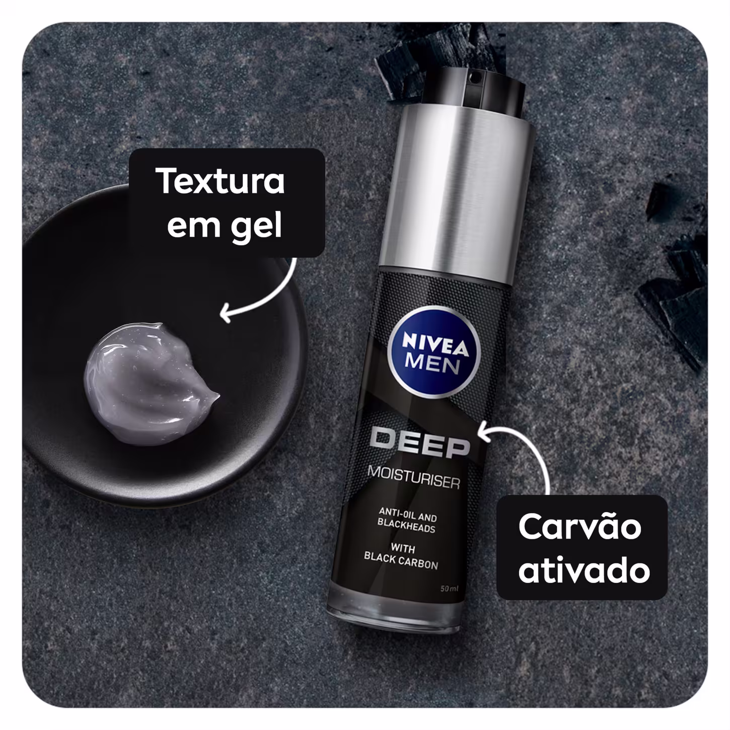 O Hidratante Facial NIVEA MEN Deep possui uma fórmula com carvão ativado e textura leve, o que evita aquela sensação oleosa na pele. Além disso, promove um efeito matte no rosto, reduzindo o brilho da derme.