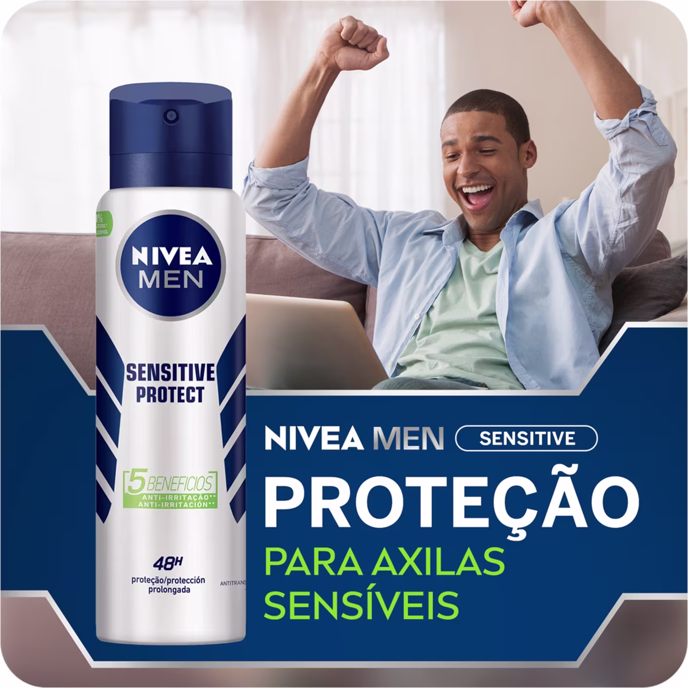 Desodorante Antitranspirante Aerossol NIVEA Men Sensitive Protect protege as axilas por até 48h, sem causar irritação. Melhores Produtos de NIVEA na BLZ. Ver mais ❯