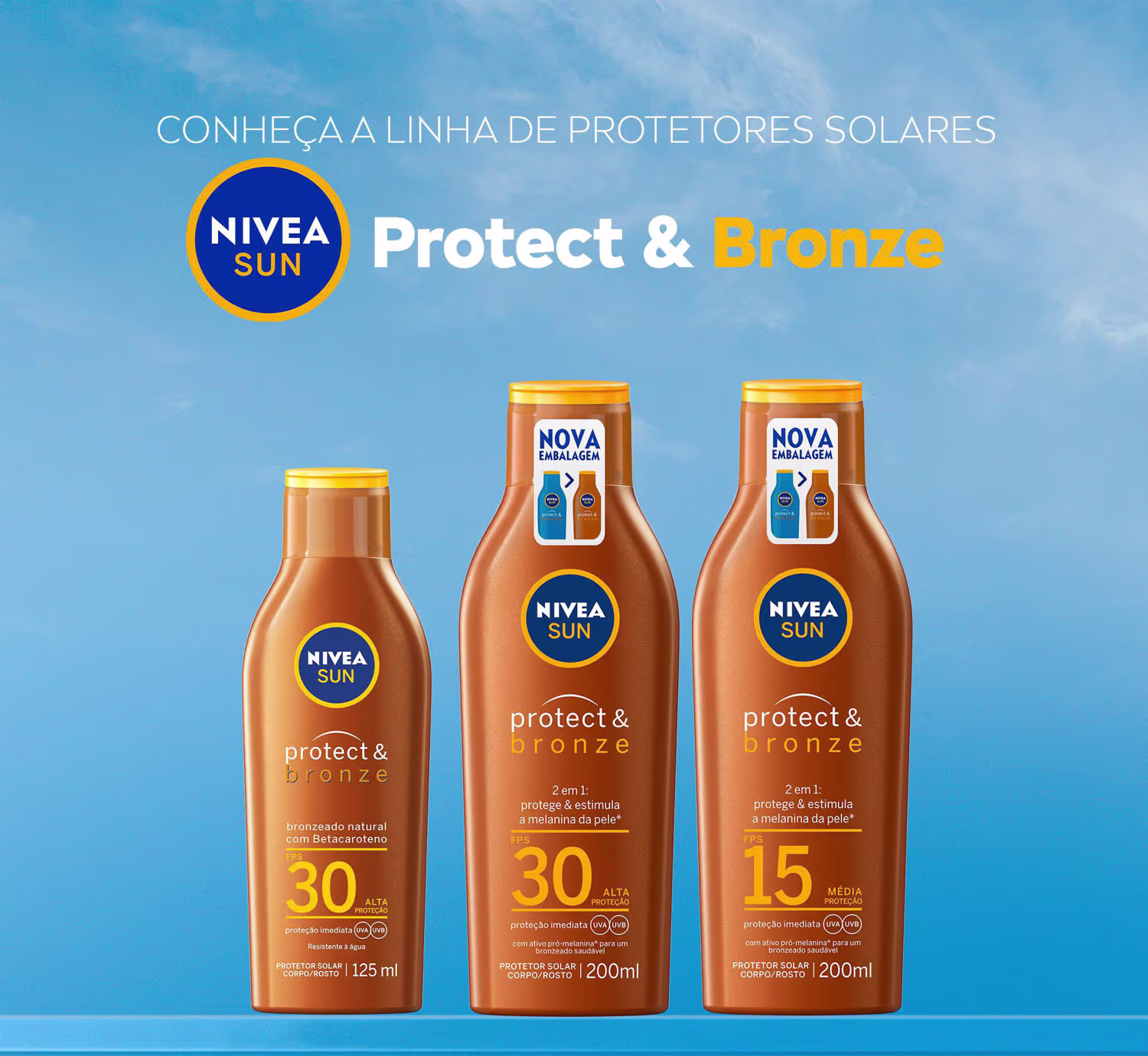 Protetor NIVEA SUN Protect & Bronze FPS 30, sua pele protegida e com um bronzeado incrível. Melhores Bronzeadores Nivea na BLZ Ver mais ❯