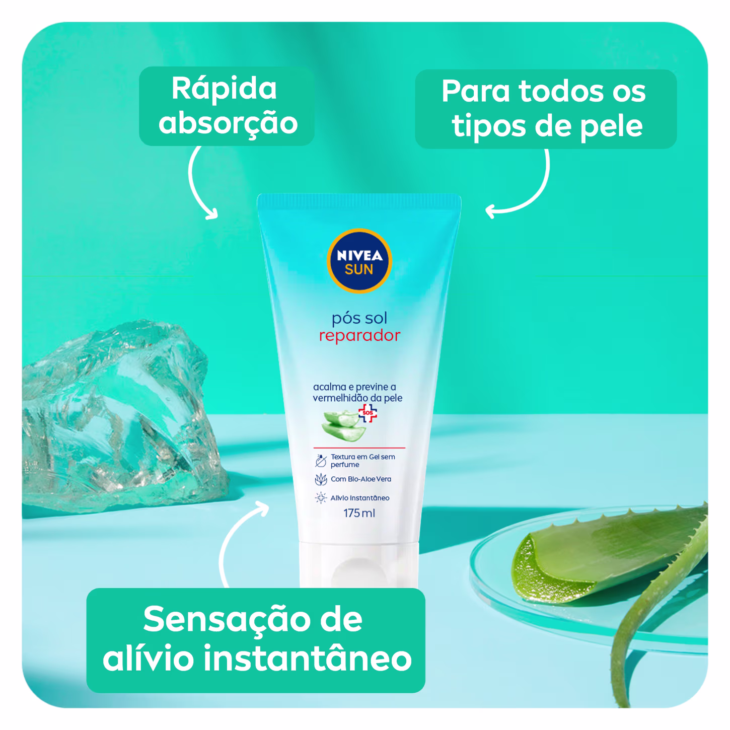O Pós Sol Nivea Sun Reparador acalma e previne a vermelhidão da pele causada pelo sol, conta com alto poder hidratante e promove sensação suave de alívio instantâneo. Sua fórmula contém bio aloe vera com efeito antioxidante.