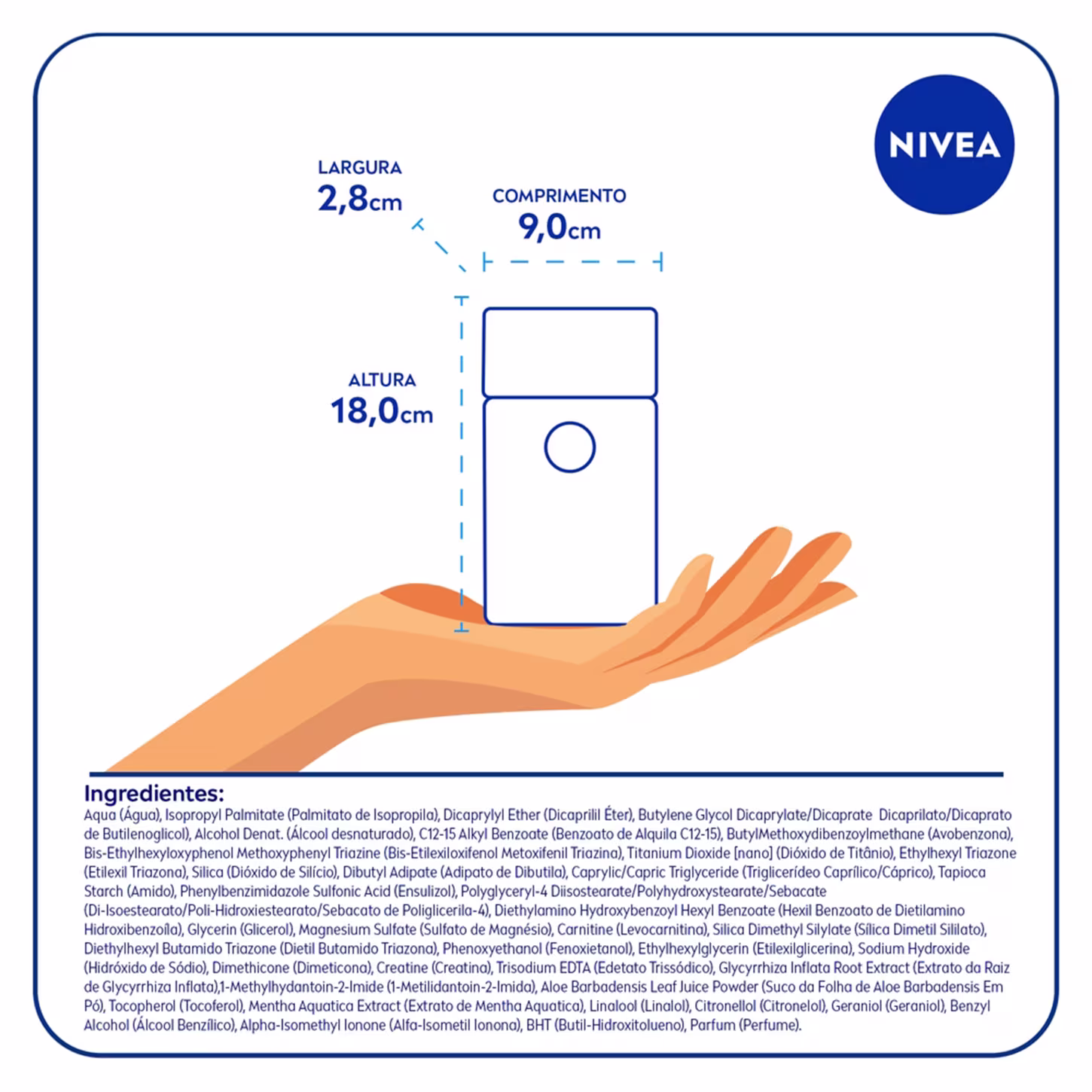 Protetor Solar Facial Nivea Sun Tripla Proteção Controle de Oleosidade FPS 65, textura fluida ideal para peles oleosas. Melhores Produtos Nivea na BLZ. Ver mais ❯