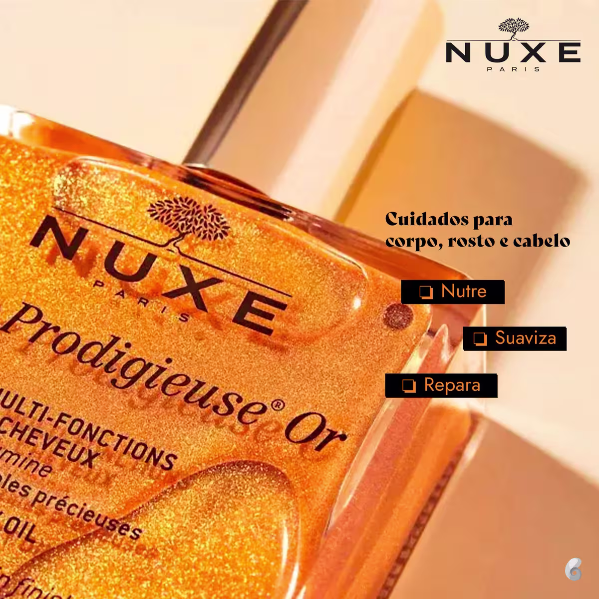 Com Nuxe Óleo Iluminador, a pele fica instantaneamente mais macia, sedosa e radiante, enquanto os cabelos ganham um brilho espelhado e um toque suave irresistível. Experimente o poder multifuncional do Nuxe Huile Prodigieuse OR e revele o seu brilho natural!