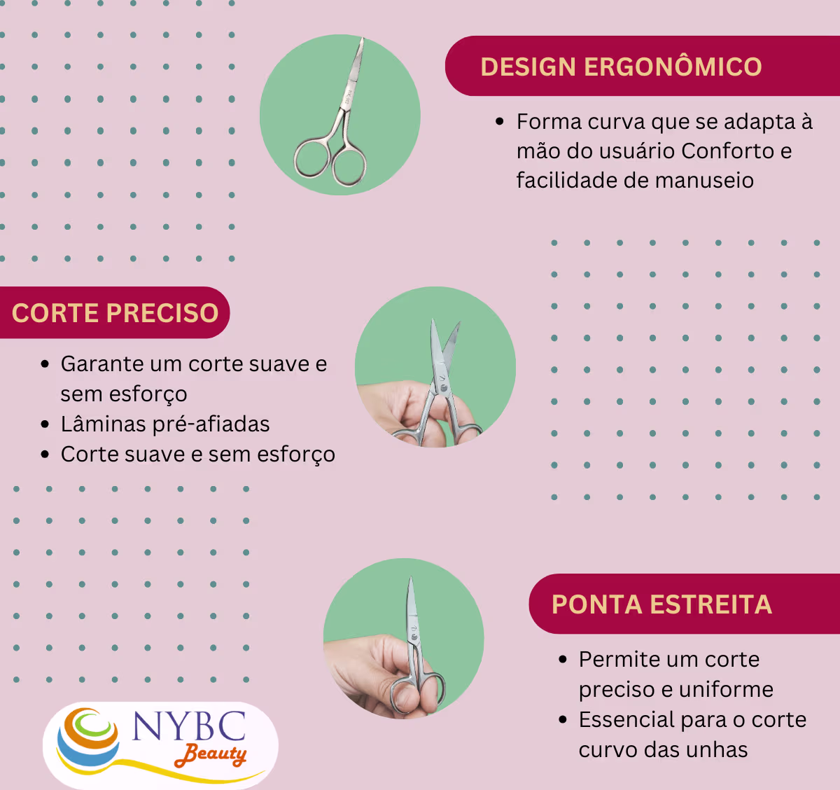 Não sei o CEPTesoura reta para unhas. NYBC Beauty 8,9cm Ponta Estreita tem ponta estreita e lâminas precisas, ideal para corte firme e confortável das unhas.
