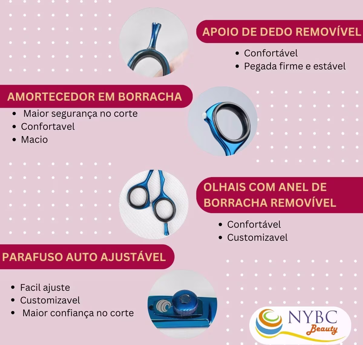 Tesoura de Cabelo NYBC Beauty Inox 420 Nano Serrilhada 5,5" 14,0cm. Possui design ergonômico e ajuste preciso, ideal para cortes detalhados. Melhores tesouras NYBC Beauty na BLZ. Ver mais ❯