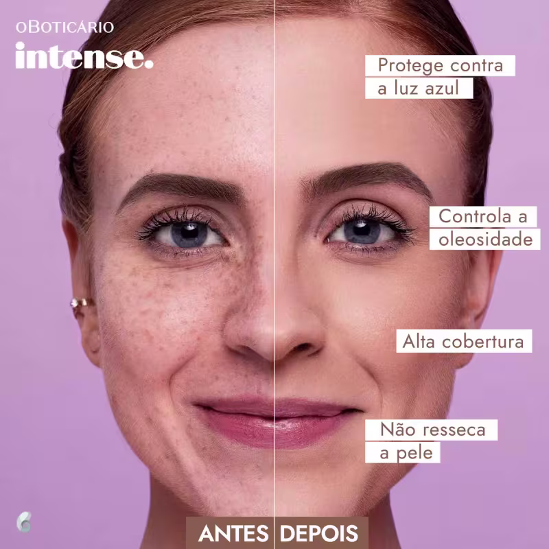 A Base Líquida o Boticário Intense Reboco HD foi especialmente projetada para aprimorar a aparência da pele, minimizando marcas de acne e olheiras de maneira eficaz. Além disso, oferece controle de brilho e oleosidade, sem causar ressecamento, enquanto preserva a hidratação e o brilho natural da pele. Enriquecida com Vitamina E, a base mantém sua cor inalterada ao longo do tempo, evitando os sinais de amadurecimento da pele. Resulta em uma pele com tom uniforme e impecável.