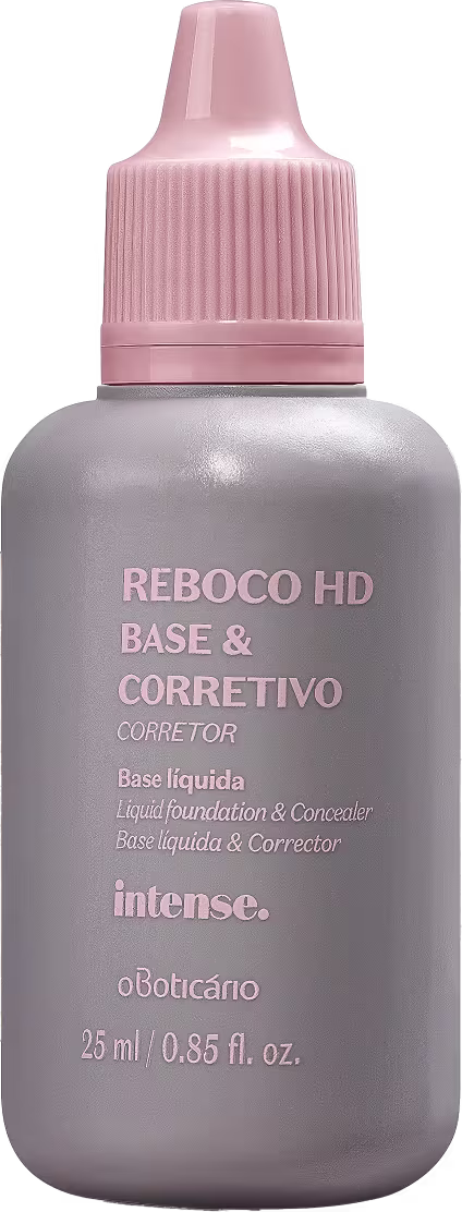 Base líquida multifuncional com alta cobertura e acabamento matte. o Boticário Intense Reboco HD também pode ser usada como corretivo.