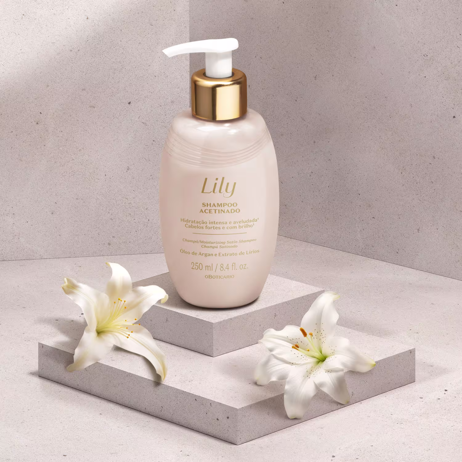 O Shampoo Acetinado o Boticário Lily traz a fragrância tão amada, agora com o poder do toque aveludado para os cabelos. A fórmula deixa os cabelos fortes e com brilho. Junto ao uso da linha completa, promove um ritual de revitalização aos fios, enquanto realiza uma limpeza eficaz.