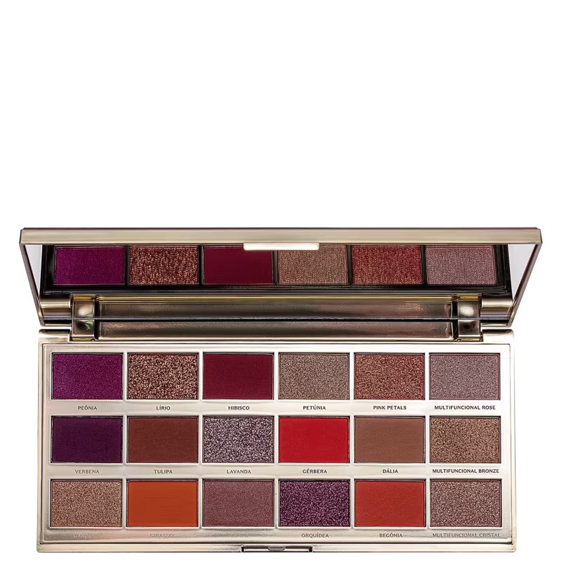 Palette Multifuncional o Boticário Make B. Pink Petals, com 18 cores de sombras impactantes. Melhores Paletas de sombra Boticário na BLZ Ver mais ❯