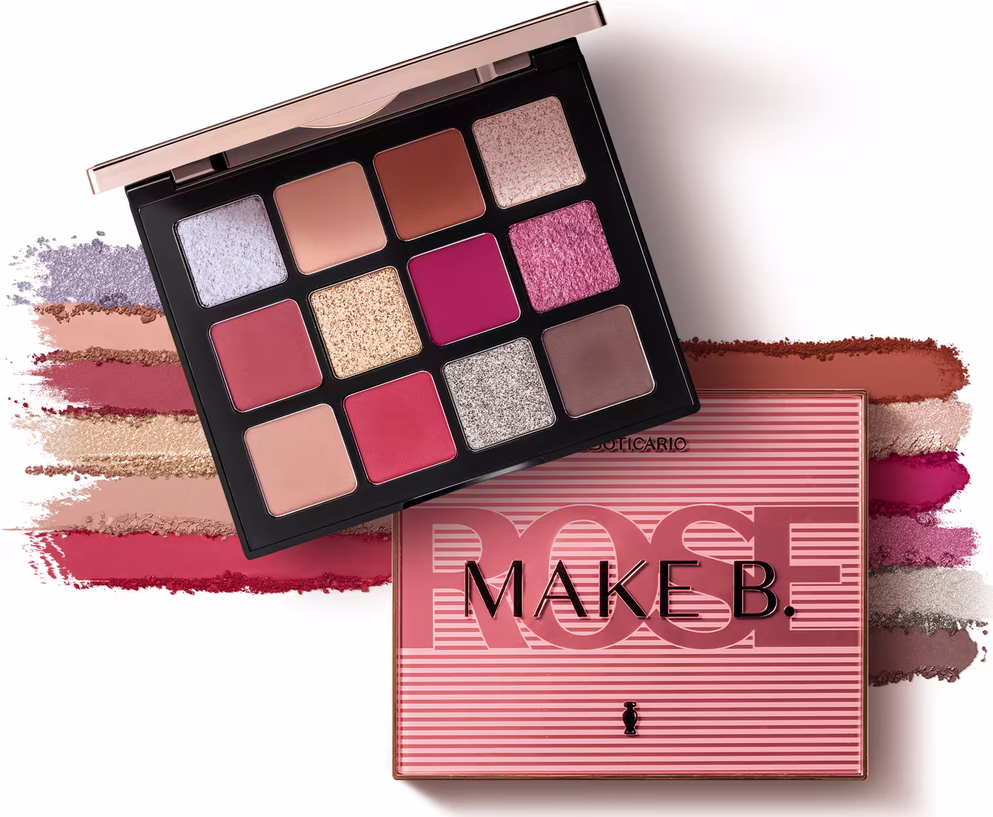 Paleta de sombras com 12 cores. o Boticário Make B. Rose traz tons super pigmentados e de longa duração para criar combinações incríveis.