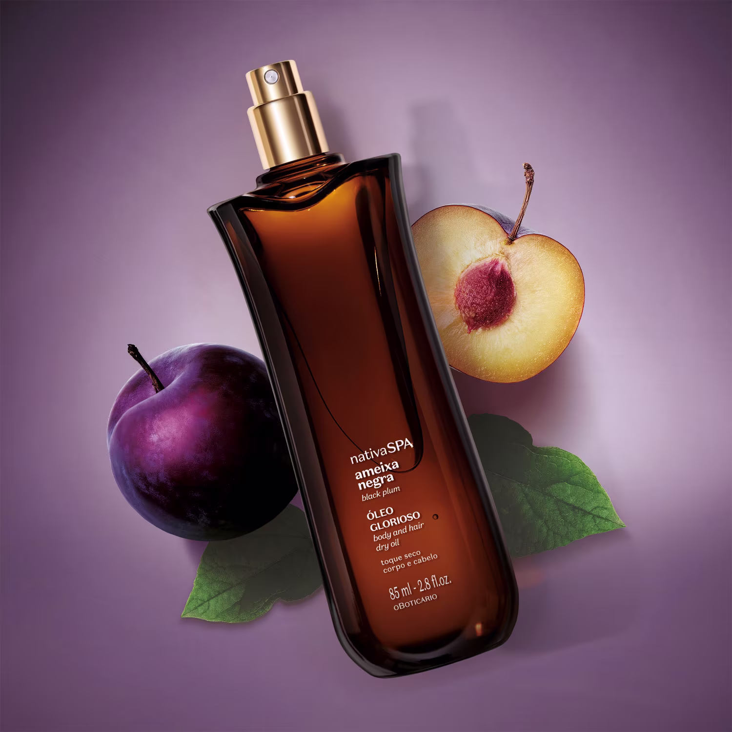 Óleo multifuncional para pele e cabelos. o Boticário Nativa SPA Ameixa Negra Glorioso entrega incrível nutrição com explosão de fragrância.