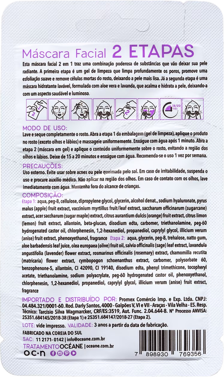 Océane 2 Step Aloe Vera e Lavanda - Máscara Facial 13g
