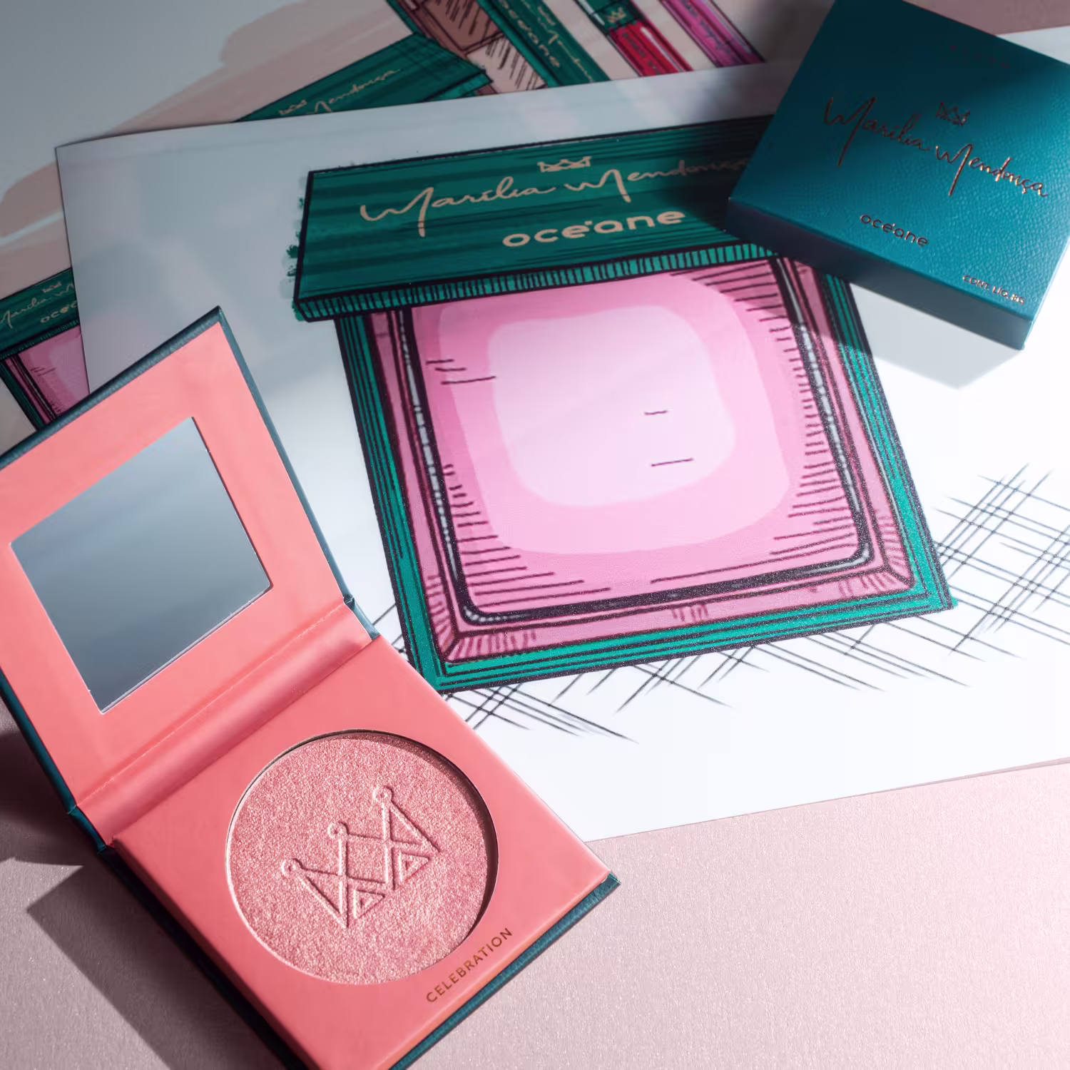 Blush em pó com acabamento cintilante. Océane by Marília Mendonça Celebration Rose Gold destaca todos os tons de pele com delicadeza e graciosidade.