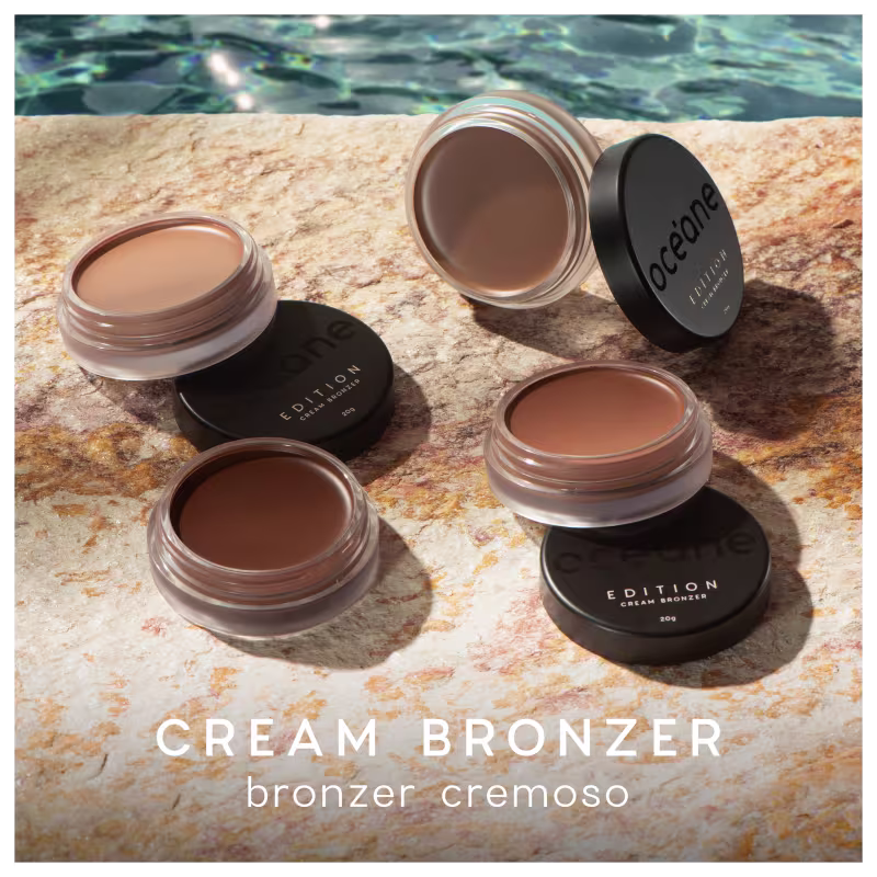 O Bronzeador Creme Océane Edition Cream Bronzer oferece alta pigmentação e longa duração, simulando um bronzeado natural que aquece o visual de forma elegante e sofisticada. Enriquecido com vitamina E, o produto entrega um sensorial agradável e espalhabilidade uniforme, deixando a aplicação prática e confortável. Versátil, pode ser utilizado tanto para criar um efeito de pele beijada pelo sol quanto para contornos faciais quentes e sutis. Disponível em quatro tonalidades, é um produto vegano, sem ingredientes de origem animal e não testado em animais, unindo performance, cuidado com a pele e consciência.