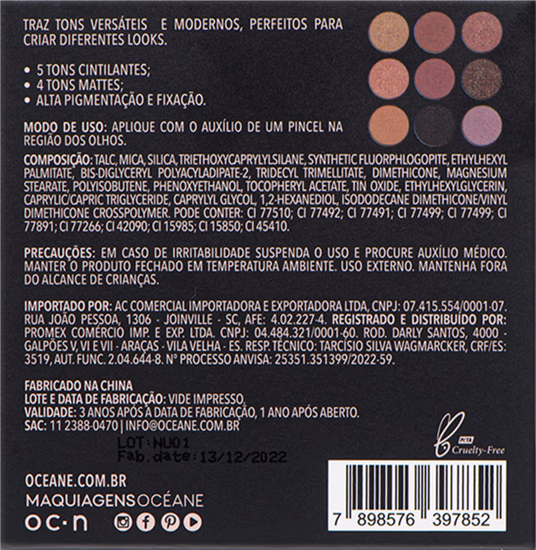 A Paleta de Sombras Océane Edition Unique Palette Nude contém 5 cores cintilantes e 4 cores matte, são tons versáteis e modernos com alta fixação e pigmentação. Perfeitos para criar diferentes looks.