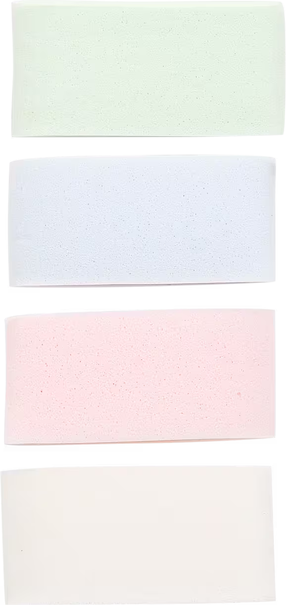 Desenvolvida em espuma hidrófila sem látex e antialérgica, 4 Strip Sponge tem textura macia e absorve facilmente base e corretivo líquido ou cremoso. Seu material resistente, garante cobertura completa e uniforme, livre de imperfeições. A embalagem conta com 4 unidades nas cores rosa, branco, azul e verde.