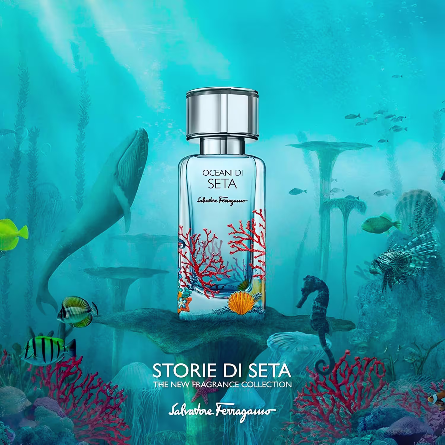 O Perfume Oceani di Seta, de Salvatore Ferragamo, faz parte da coleção Storie Di Seta. Ao todo, a linha possui quatro fragrâncias inspiradas na rota da seda e no seu toque confortável. São criações olfativas refinadas, carregando um frescor inebriante.
