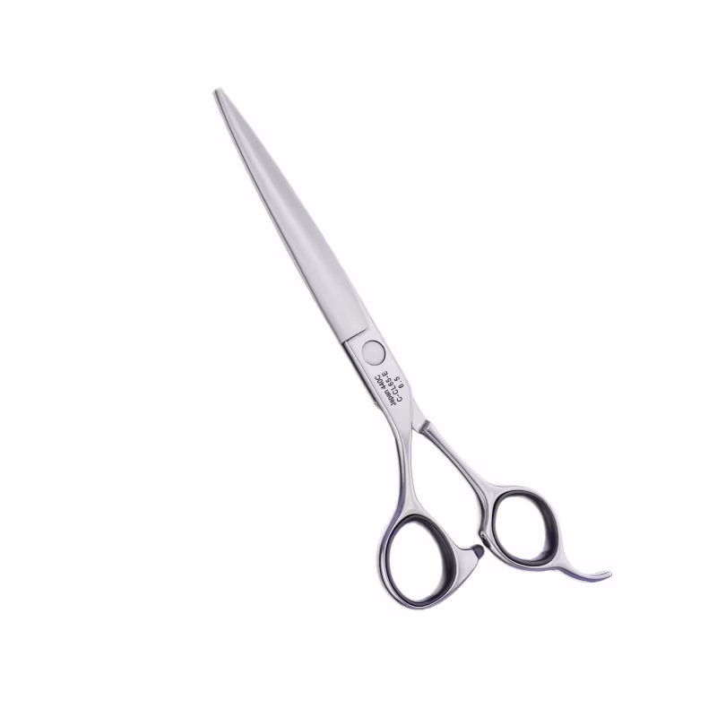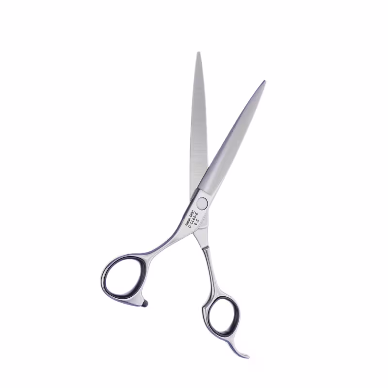 Tesoura de corte e acabamento com fio tipo navalha. Tesoura de Corte para Mão Esquerda 6,5" OKYO Creare C-CL65-E possui uma borda de lâmina convexa e empunhadura Offset.