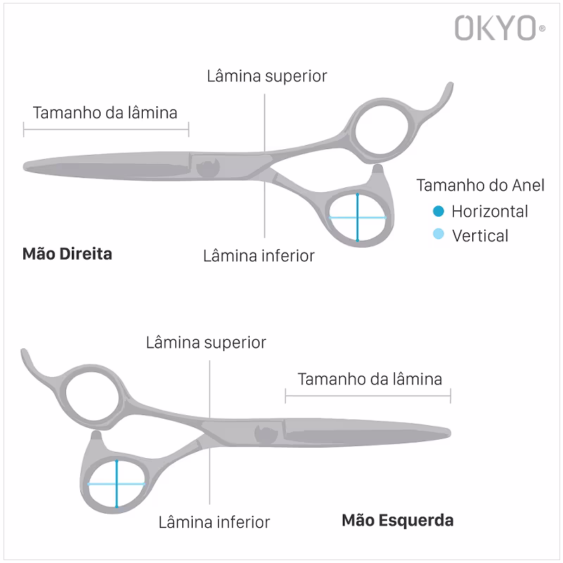 Tesouras para canhotos possuem lâminas invertidas, fazendo com que a lâmina superior esteja sempre à esquerda. Isto permite que você visualize sua linha de corte e que a ação natural de compressão de sua mão empurre uma lâmina contra a outra ao invés de separá-las.