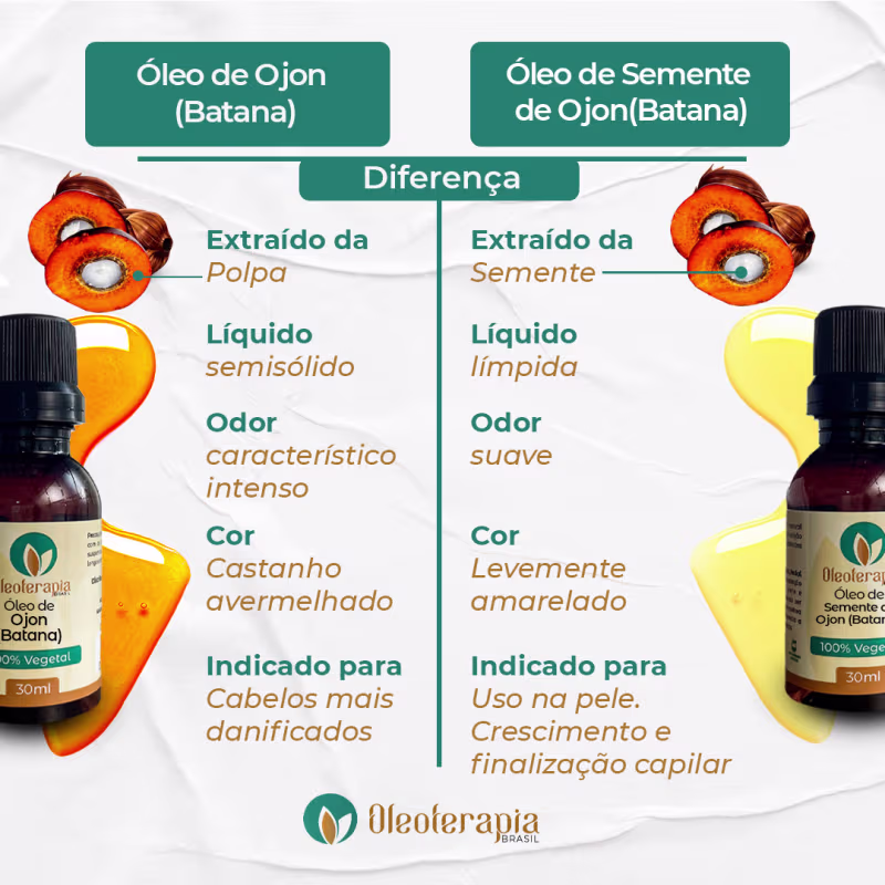 Óleo vegetal 100% puro de ojon. Oleoterapia Brasil Ojon hidrata e fortalece os cabelos, enquanto intensifica a hidratação da pele.