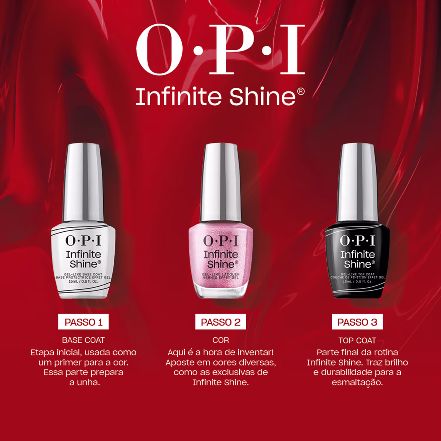 Esmalte cintilante com efeito gel. OPI Infinite Shine traz tecnologia avançada, com duração de 11 dias.