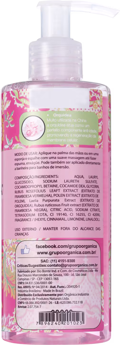 Orgânica Puro Vegetal Framboesa e Orquídea - Sabonete Líquido 250ml